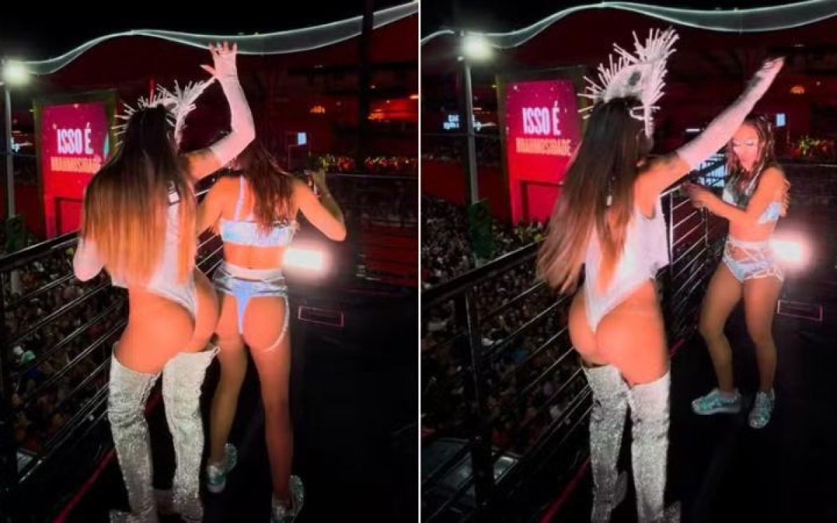 A folia do Carnaval de Salvador ganhou um momento especial nesta sexta-feira (28) com a apresentação de Anitta no Bloco da Anitta, no circuito Dodô (Barra-Ondina). A cantora, de 31 anos, levou o público ao delírio ao fazer uma divertida “batalha de bumbum” com a rainha do axé Alinne Rosa, de 42 anos. As duas artistas, que são grandes nomes da música brasileira, cantaram juntas hits do axé e animaram a multidão que acompanhava o trio elétrico.