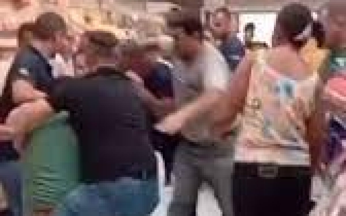 Nas imagens, é possível ver que até uma criança e uma idosa acabam envolvidas na confusão. As circunstâncias do caso ainda estão sendo apuradas.